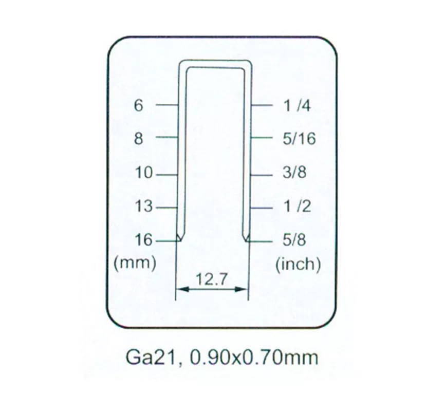تشمل نماذج المنتجات أساسا 8016B Air Fine Crown Stapler ، 8016C Air Fine Crown Stapler ، 8016ln (Long Nose) Air Fine Crown Stapler ، وكلها مدافع هواء الهواء الكلاسيكية. Nail Ga21 ، 0.90x0.70mm ، مسافة الكتف 12.7 مم ، ارتفاع الأظافر يمكن أن يكون 6 مم ، 8 مم ، 10 مم ، 13 مم ، 16 مم (1/4 ، 5/16 ، 3/8 ، 1/2 ، 5/8 بوصة).