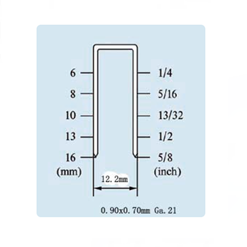 8416 Air Fine Crown Stapler هي مدافع الأظافر الهوائية الكلاسيكية. Nail Ga21 ، 0.90x0.70mm ، مسافة الكتف 12.2 مم ، ارتفاع الأظافر يمكن أن يكون 6 مم ، 8 مم ، 10 مم ، 13 مم ، 16 مم (1/4 ، 5/16 ، 3/8 ، 1/2 ، 5/8 بوصة).