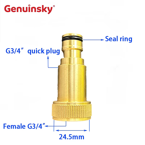 مرشح المياه النحاسي مدخل للسيارات Yili Lutian و Batman و Falcon و Poseidon Car Gassines. أحد طرفي المنتج هو قابس سريع G3/4 "، والذي يحتوي أيضًا على حلقة ختم. الطرف الآخر هو أنثى G3/4" ، بقطر 24.5 مم.