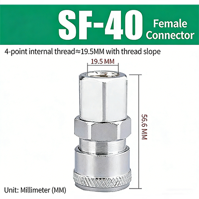 3. إس إف-40. خيط الأنبوب البريطاني G1/2"، يبلغ قطر جزء الخيط حوالي 19.5 مم، والطول الإجمالي للمنتج 56.9 مم.