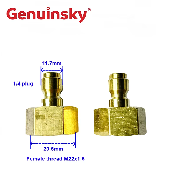 هذا المنتج عبارة عن موصل سريع للإناث 1/4 بوصة ، موصل M22 ، مع قابس 1/4 في نهاية واحدة ، بقطر 11.7 مم ، وخيط أنثى M22 × 1.5 في الطرف الآخر ، بقطر 20.5 مم ، وهو مناسب لأجهزة التنظيف لغسالات الضغط العالي.