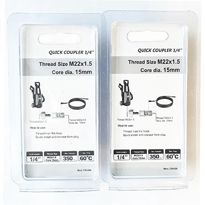 إن قارنة التوصيل 1/4 لهاتين المواصفات لها تصميمات مختلفة الحجم. إحداهما M22×1.5، بقطر 22 مم، منها القطر الأساسي 15 مم. والآخر هو M14×1.5، بقطر 14 ملم وفتحة مستدقة. إن تصميم الحجمين للمنتج دقيق للغاية، ويمكن تكييفه بدقة مع آلات التنظيف المطابقة ذات الصلة واستخدامه لموصلات خرطوم مسدس الغسيل عالي الضغط. مادة المنتج نفسه هي النحاس. تتميز المادة النحاسية بمقاومة جيدة للتآكل. غالبًا ما تحتاج أعمال التنظيف بالضغط العالي إلى مواجهة بيئة رطبة. ولذلك، فإن مقاومة التآكل للمنتج نفسه يمكن أن تعمل بشكل طبيعي في العديد من بيئات العمل القاسية. في الوقت نفسه، يتمتع النحاس بمرونة وصلابة جيدة، وفي تدفق المياه عالي الضغط، يمكن أيضًا الحفاظ على متانة المنتج نفسه في التأثير، وليس من السهل كسره، مما يتسبب في تسرب المياه وتقليل تكلفة استبدال المعدات. تشمل سيناريوهات الاستخدام الشائعة تنظيف المنزل أو تنظيف المعدات الصناعية أو تنظيف المرافق الخارجية. أثناء عمليات التنظيف هذه، يمكن إجراء التثبيت أو التفكيك بسرعة. يمكن للمستخدمين إكمال عمل الاتصال بسرعة دون مساعدة الأدوات، مما يحسن كفاءة العمل بشكل كبير ويوفر الوقت. وفي الوقت نفسه، فإن حجم مقرنة 1/4 لهاتين المواصفات مناسب جدًا أيضًا. يمكن للمستخدمين إكمال عملية الاتصال بسهولة ومرونة بيد واحدة.